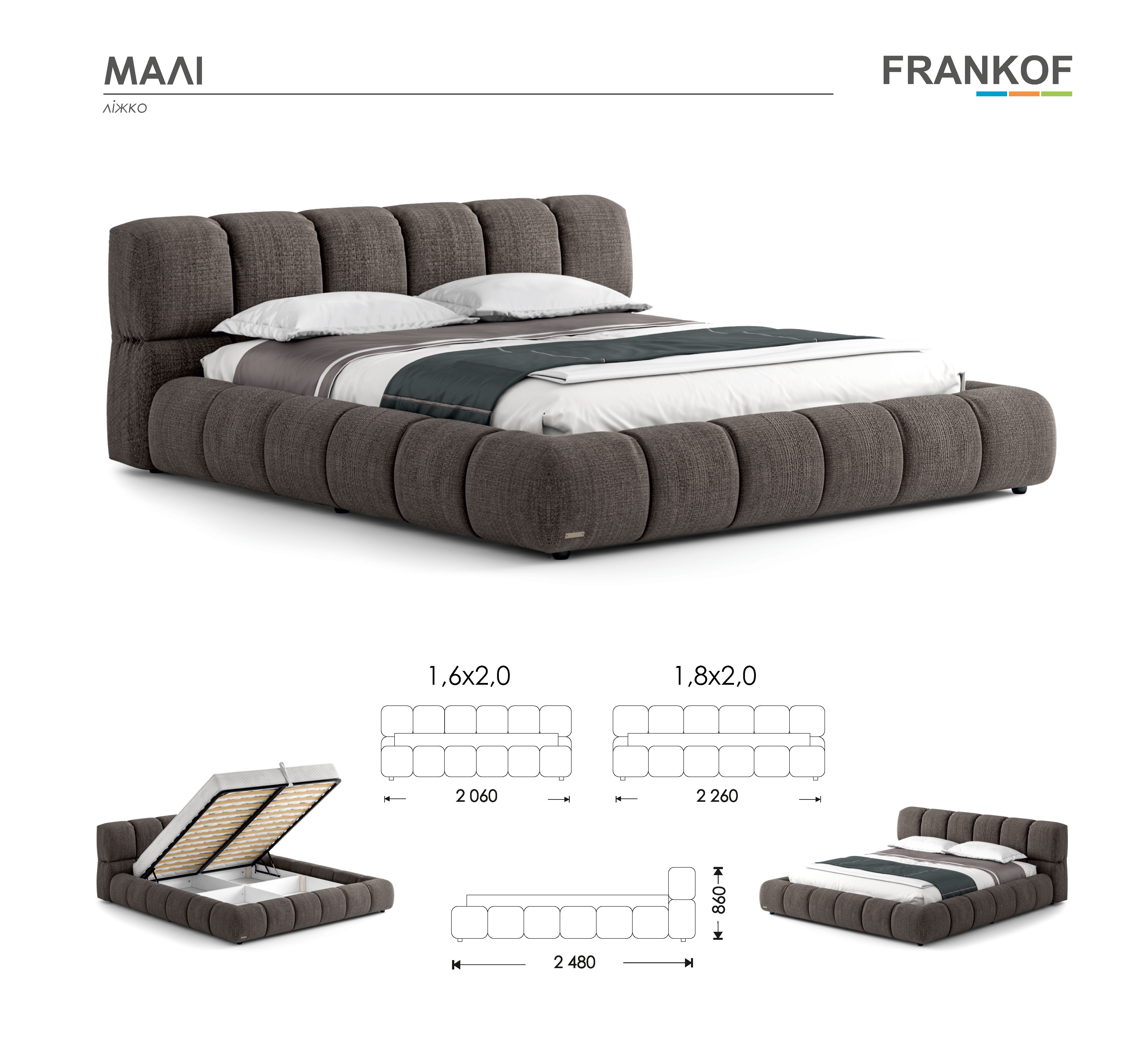 “Малі” – це неповторне поєднання розкішної пишності та сучасної естетики, створене дбайливими руками українських майстрів. Особлива родзинка моделі – об’ємні форми з прямокутними прошивами, які надають ліжку вигляду м’якої хмаринки та створюють відчуття неперевершеного комфорту.